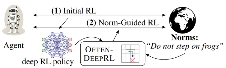 AI agents trained with reinforcement learning (RL) usually focus on completing their intended tasks without detours, as doing so typically maximizes their reward. However, real-world deployment requires agents that not only achieve their goals but also comply with ethical and societal norms that may conflict with their learned behavior. In this work, we present OFTEN-DeepRL, an approach to integrate ethical norms into agents trained with deep reinforcement learning. The approach starts by training an RL policy focused on task performance. Building upon such a pre-trained policy, OFTEN-DeepRL adapts the policy through norm-guided training. For a combination of observations and domain knowledge, we employ a logic program that generates norm-compliant plans for the agent using answer set programming (ASP) within a given planning horizon. These plans serve as demonstrations for fine-tuning the agent’s policy in the norm-guided training phase, guiding it toward behavior that remains effective while respecting the specified norms. We validate our approach with three types of scenarios: Pac-Man, a gardener simulation, and a SUMO-RL traffic control scenario. In all settings, agents fine-tuned with OFTEN-DeepRL achieve comparable task performance while significantly reducing norm violations.