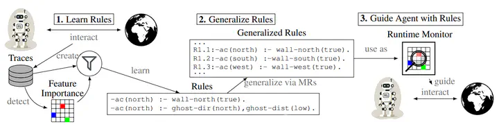 We consider the challenging problem of using domain knowledge to improve deep reinforcement learning policies. To this end, we propose LEGIBLE, a novel approach, following a multi-step process, which starts by mining rules from a deep RL policy, constituting a partially symbolic representation. These rules describe which decisions the RL policy makes and which it avoids making. In the second step, we generalize the mined rules using domain knowledge expressed as metamorphic relations. We adapt these relations from software testing to RL to specify expected changes of actions in response to changes in observations. The third step is evaluating generalized rules to determine which generalizations improve performance when enforced. These improvements show weaknesses in the policy, where it has not learned the general rules and thus can be improved by rule guidance. LEGIBLE supported by metamorphic relations provides a principled way of expressing and enforcing domain knowledge about RL environments. We show the efficacy of our approach by demonstrating that it effectively finds weaknesses, accompanied by explanations of these weaknesses, in eleven RL environments and by showcasing that guiding policy execution with rules improves performance w.r.t. gained reward.